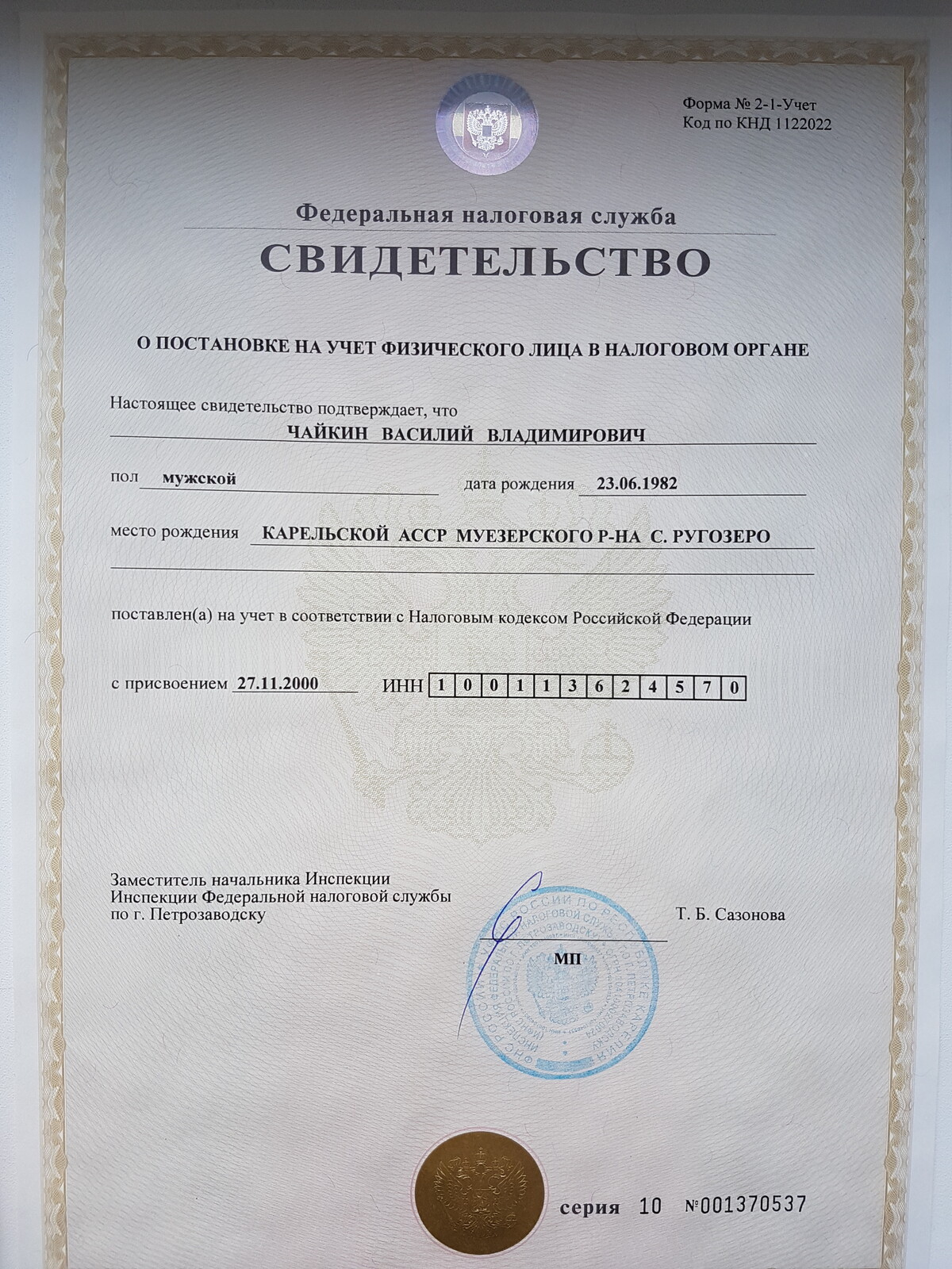 ИНН 1001354660