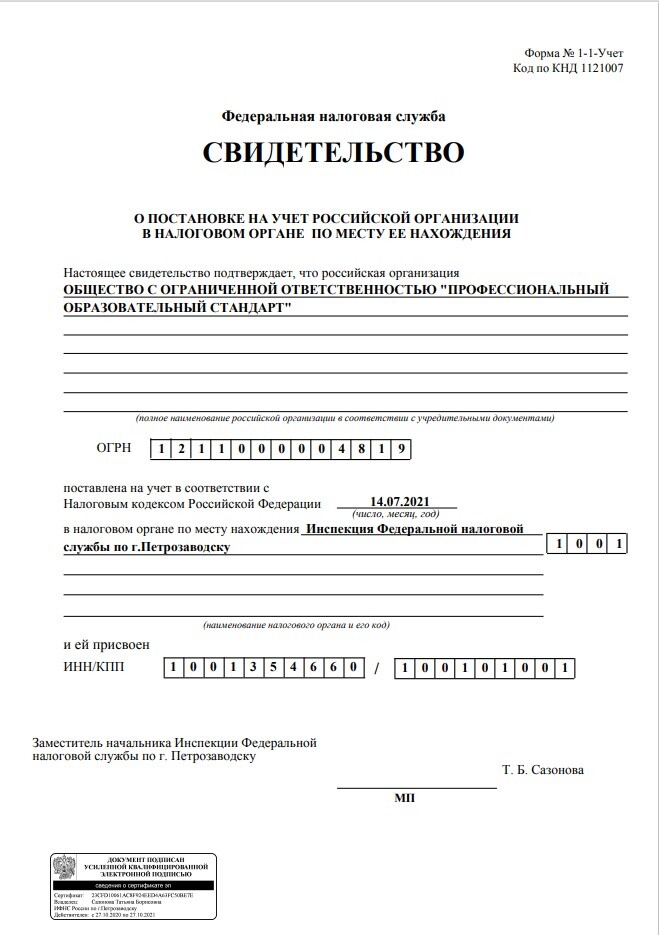ОГРН 1211000004819